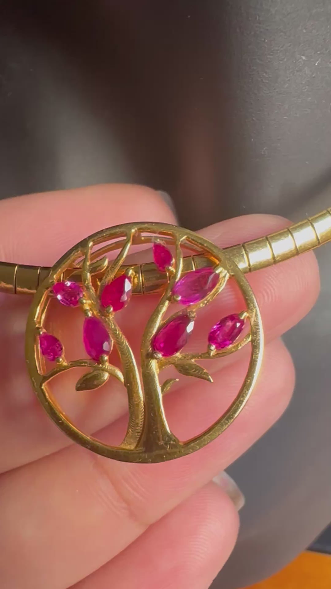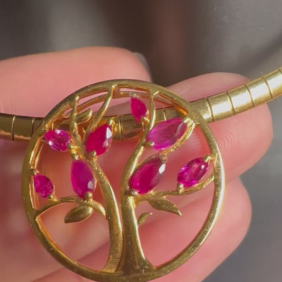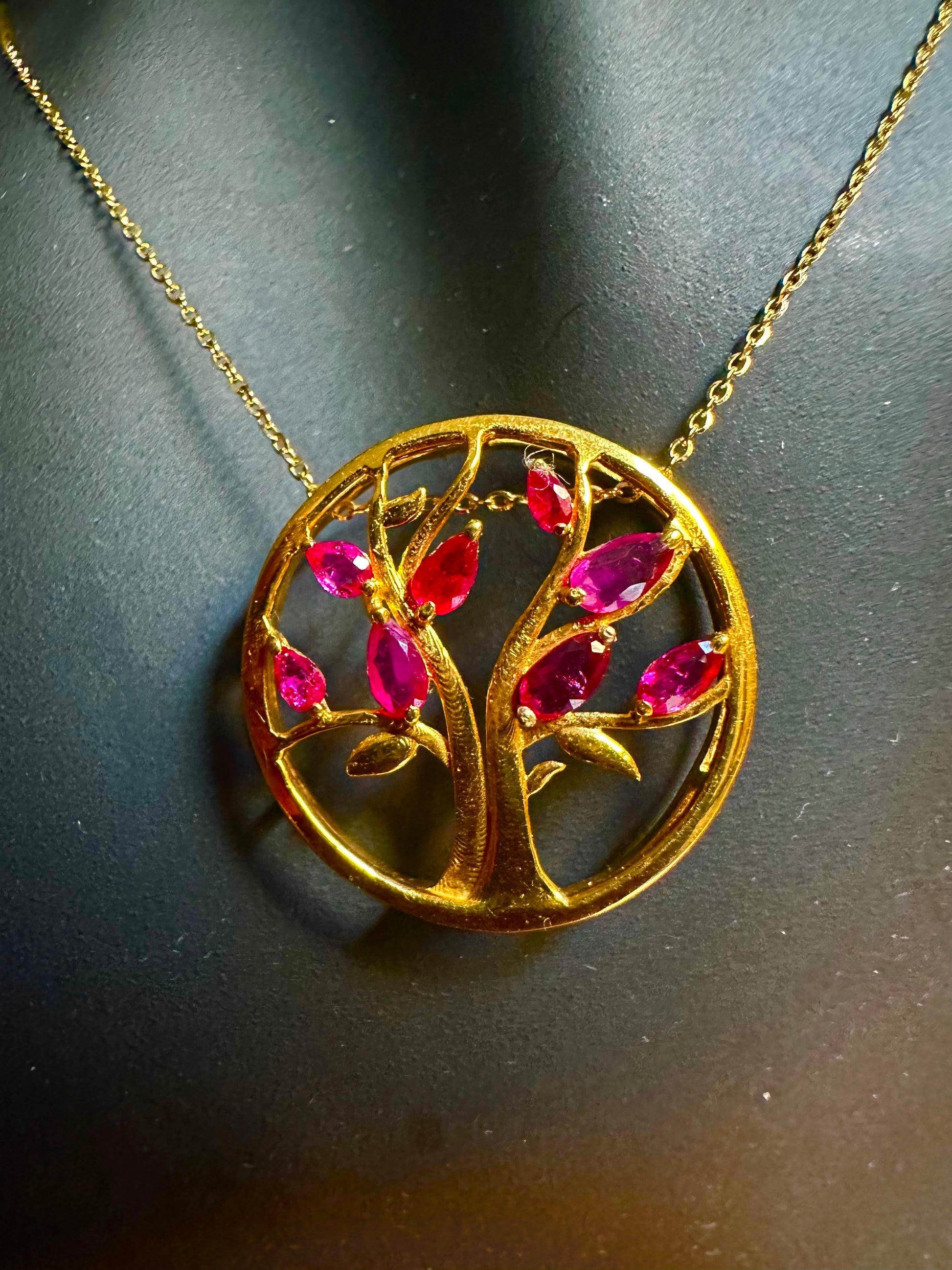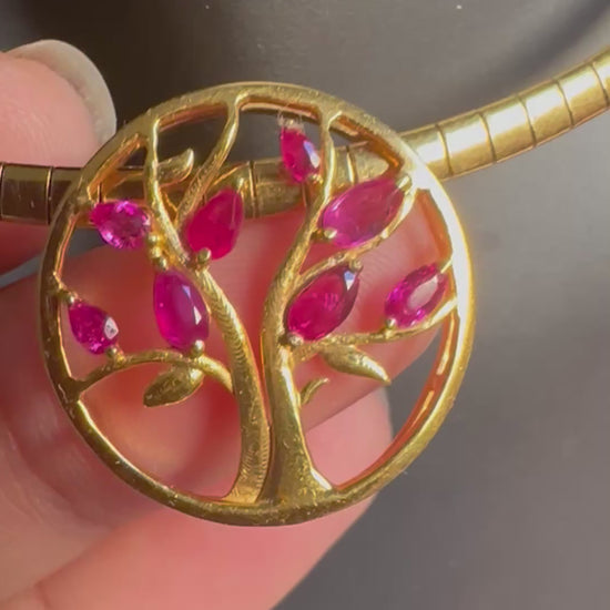 Modern Tree of Life Pendant with Natural Unheated Burmese Rubies on a Solid Gold Chain