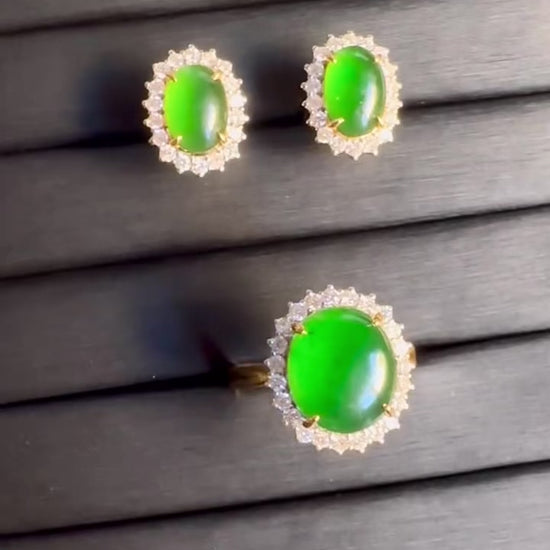 Diana-Style Ring - Natural Unheated Burmese Jadeite Jade (Type A) with Natural Diamonds in 18K Solid Gold.