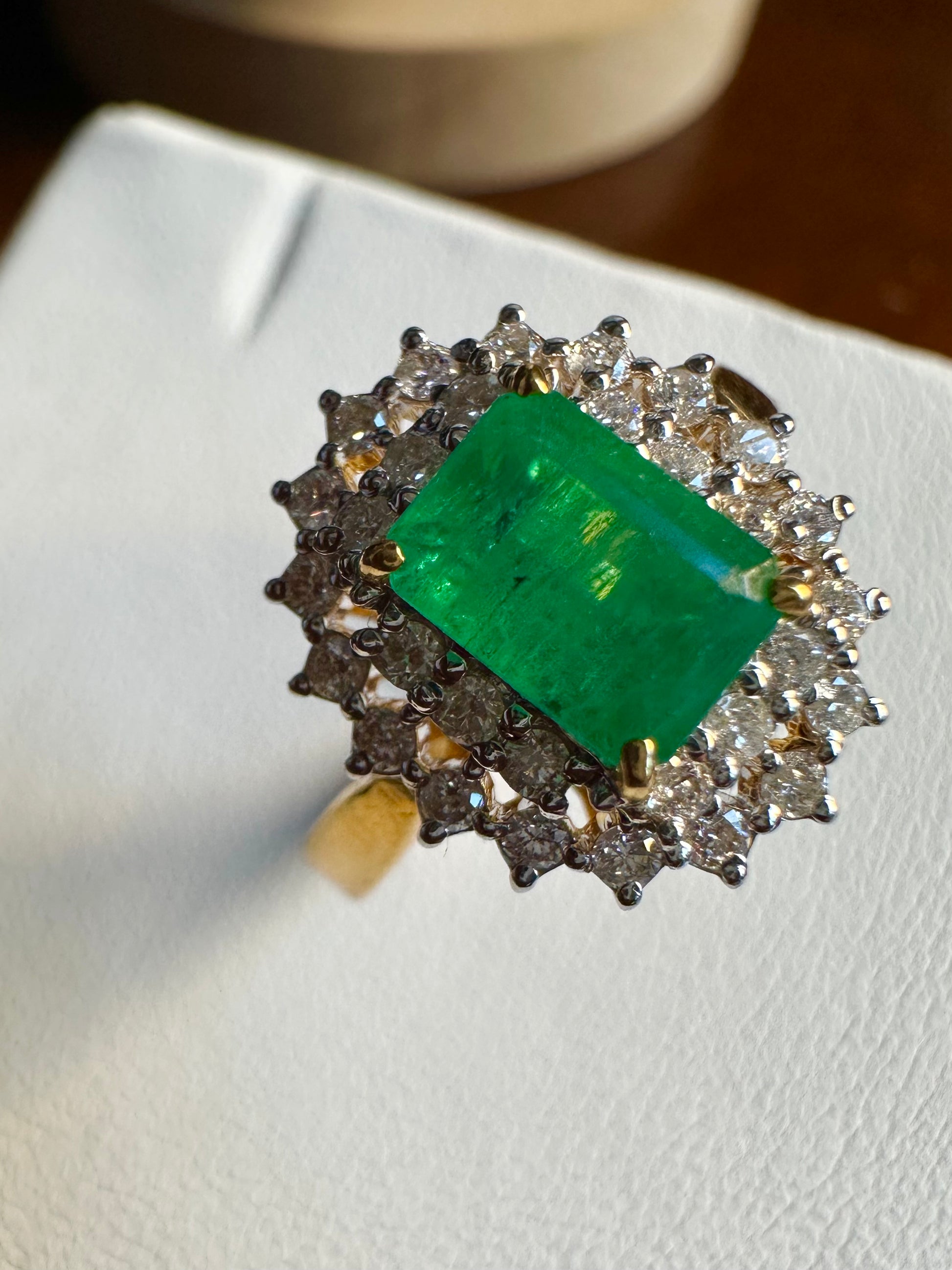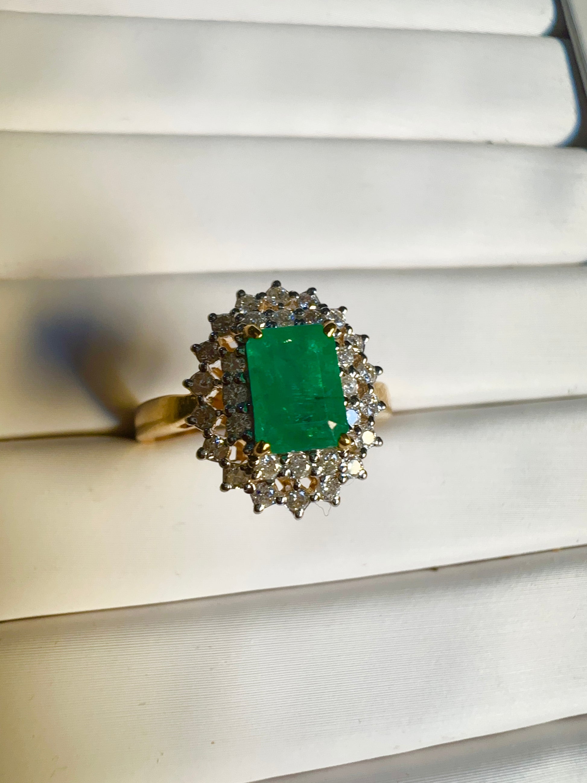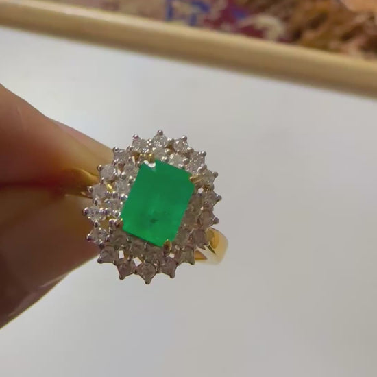 Emerald Cut Natural Emerald and Natural Diamonds Ring in 18K Solid Gold