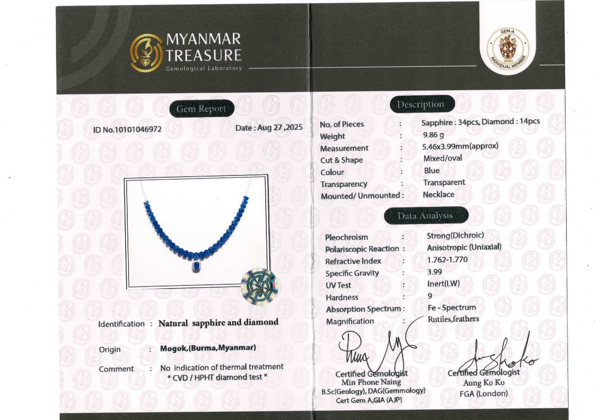 - Main Gemstone - Burmese Unheated Natural Sapphire