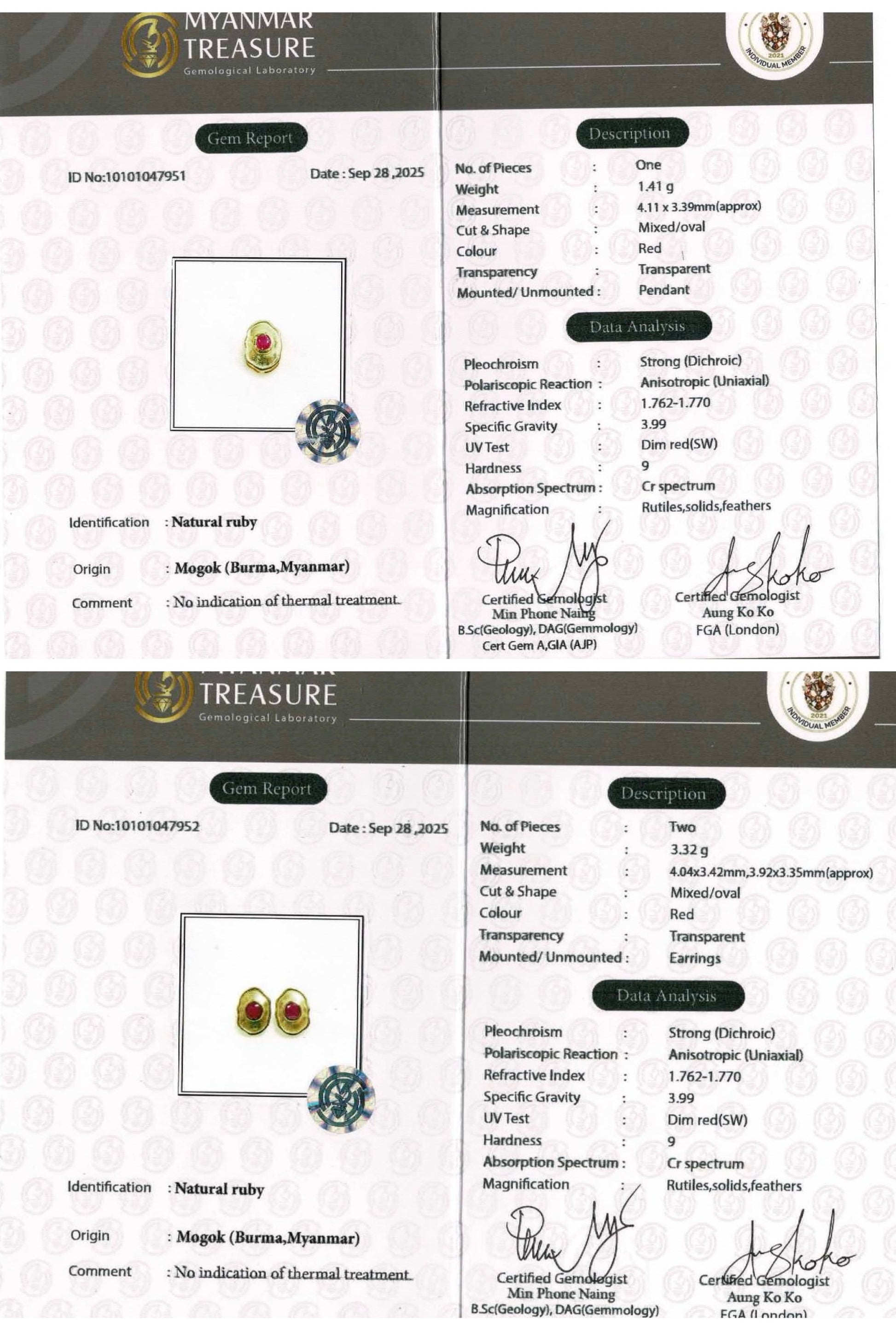 +Earrings : Total Carat Weight of Ruby (2pcs) – 0.8CT(approx)