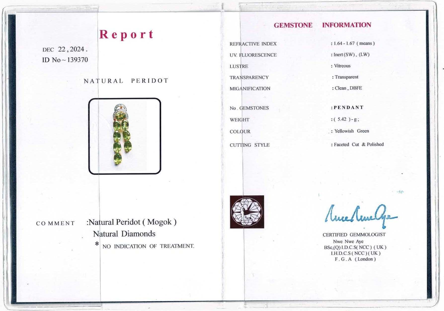 + Main Gemstone - Burmese Natural Unheated Peridotย