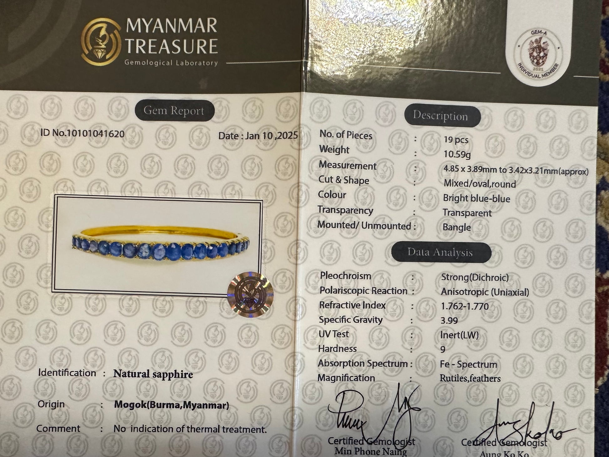 + Accompanied by a certificate from Myanmar Treasure( Gemological Laboratory, Myanmar)ย