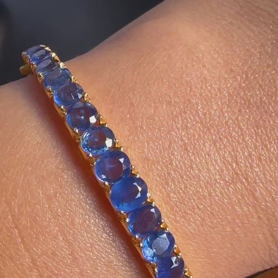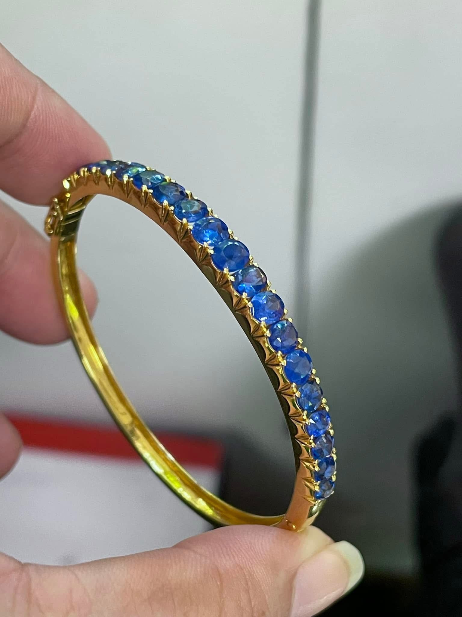 Natural Unheated Burmese Sapphire (7CT) Bangle in 20K Solid Gold