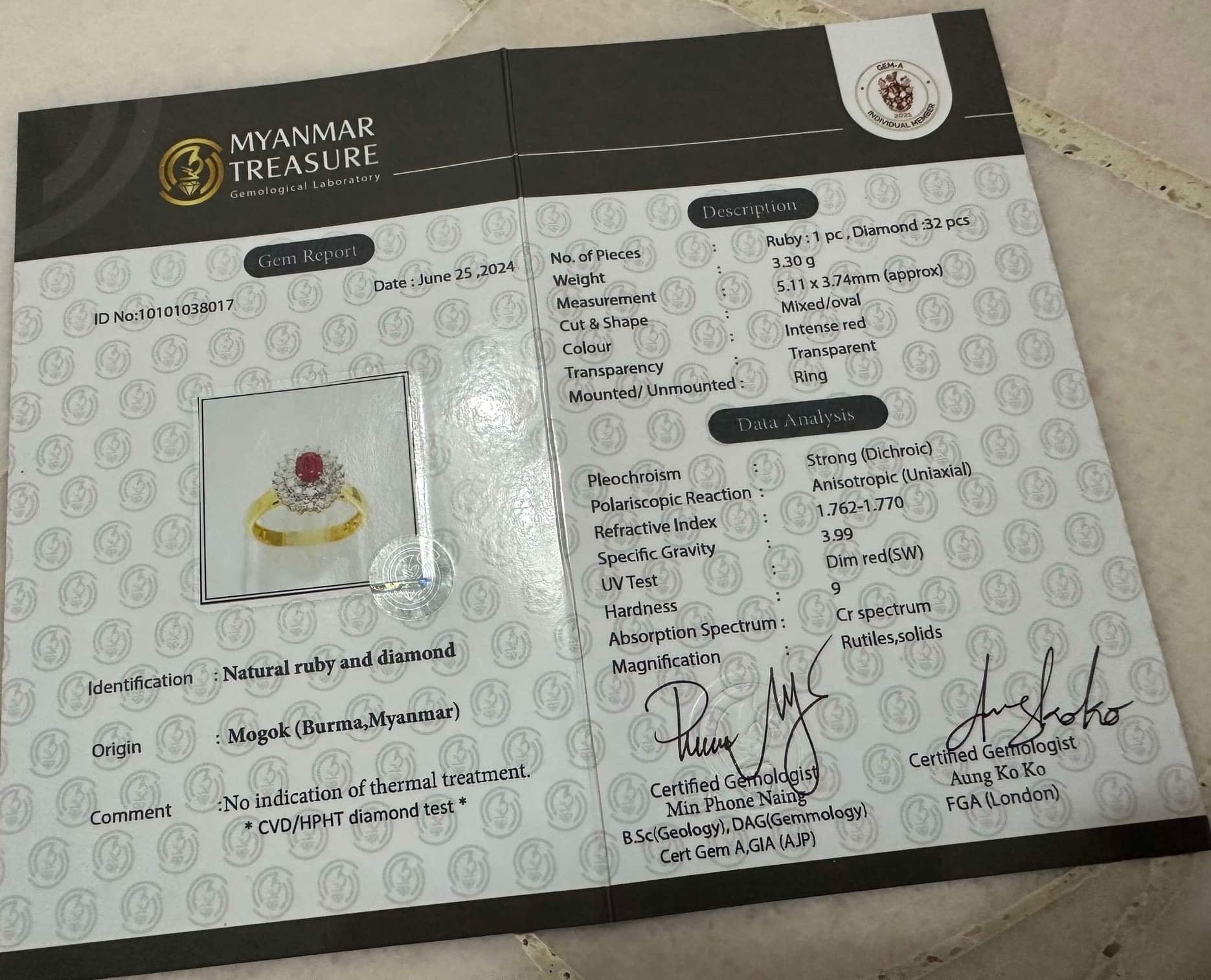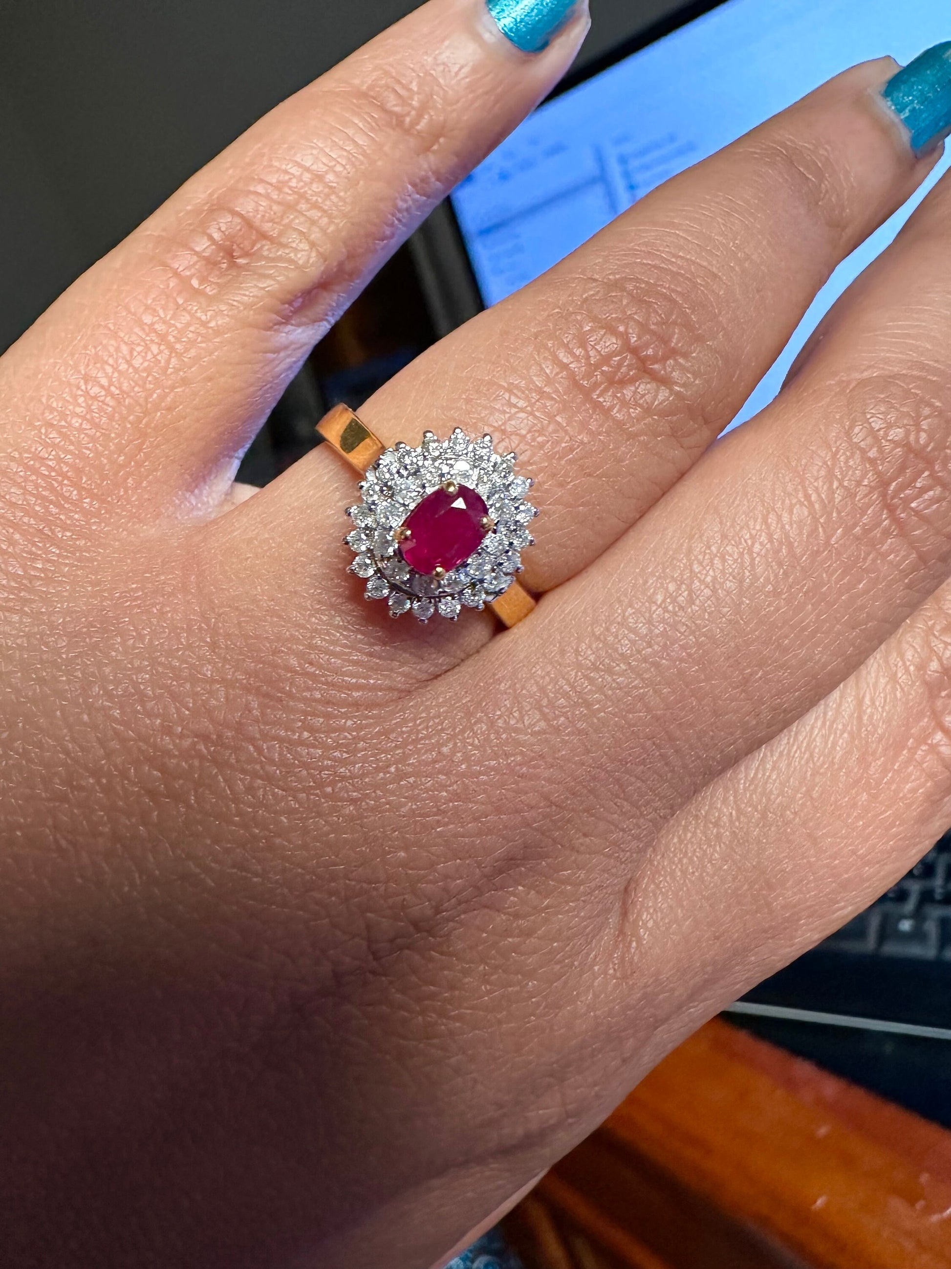 Burmese Natural Unheated Ruby and Natural Diamonds Ring in 20K Solid Gold