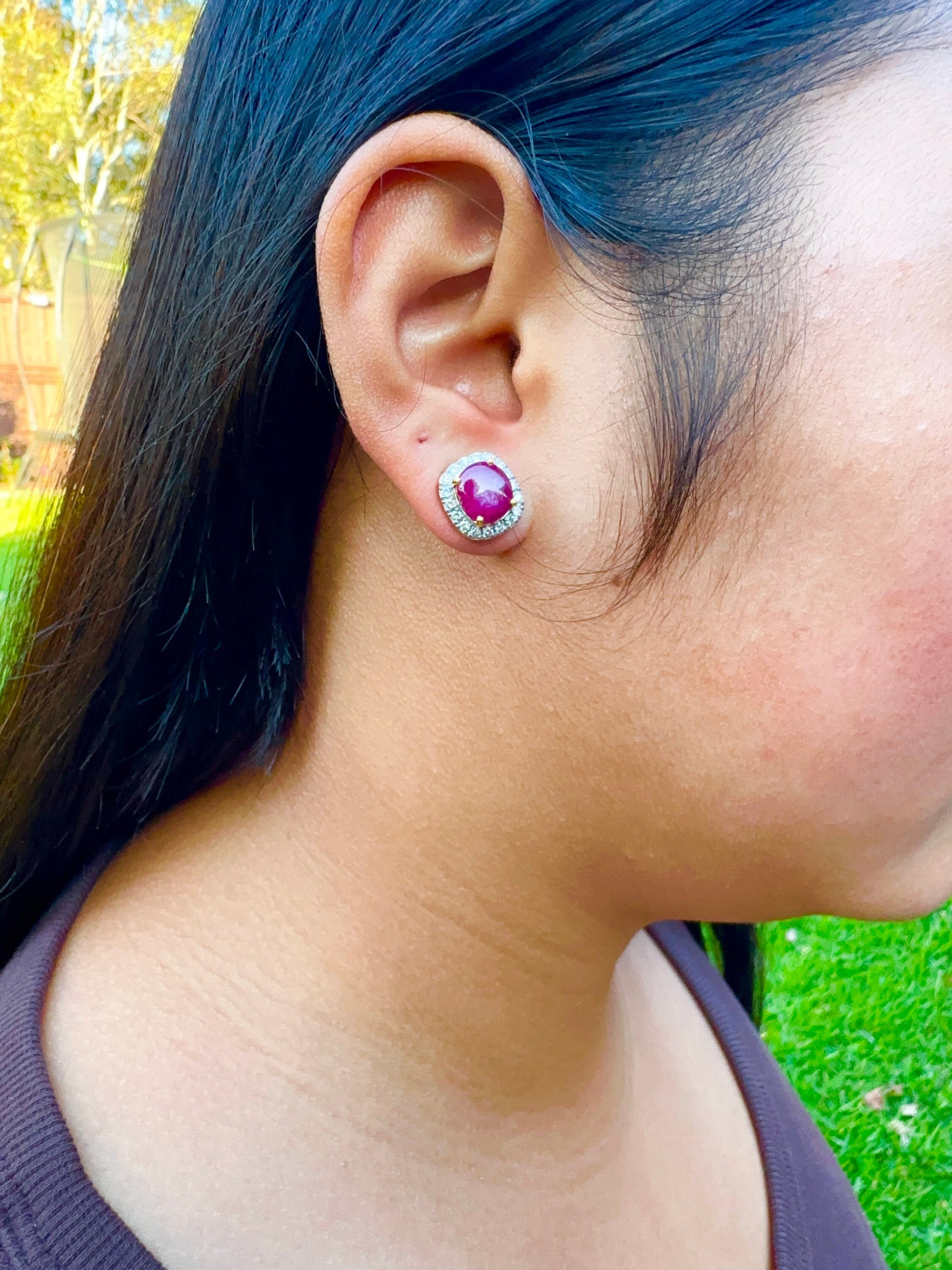 Oversized Natural Unheated Star Ruby (7.77CT) Earrings with Natural Diamonds in 20K Gold