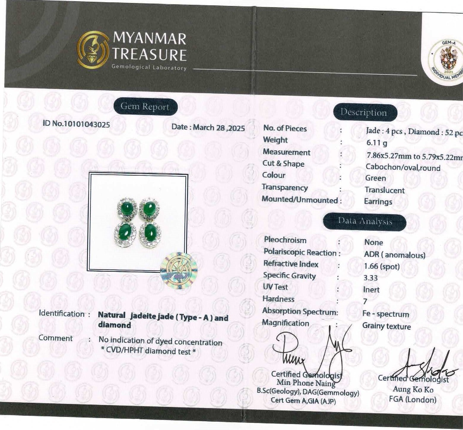 + Treatment - None (No Heated, No Treated, Not Enhanced for both Jadeite Jade and Diamonds)
