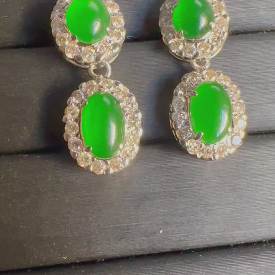 Two Step Drop Earrings Natural Untreated Burmese Jadeite & Diamonds