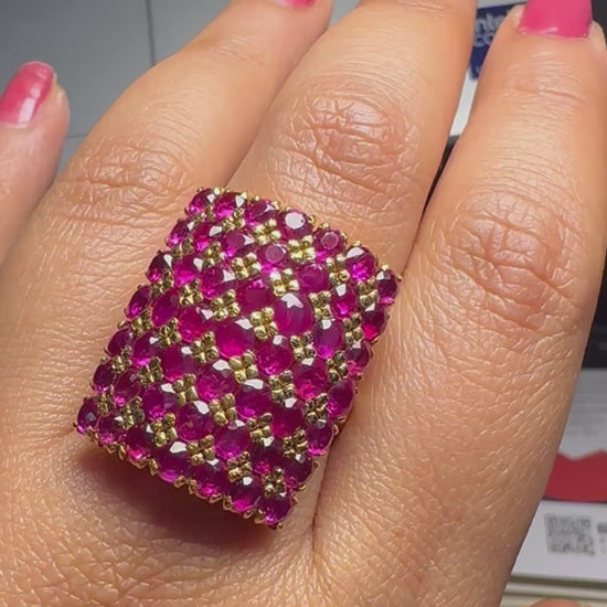 Vintage Style Burmese Unheated Ruby Dome Cluster Ring in 18ct Gold